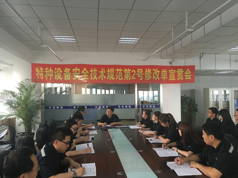 6月26日,中吉特檢組織相關人員召開《特種設備安全技術規(guī)范》第2號修改單宣貫會,對質檢總局特種設備局發(fā)布的《電梯監(jiān)督檢驗和定期檢驗規(guī)則—曳引與強制驅動電梯》、《電梯監(jiān)督檢驗和定期檢驗規(guī)則——自動扶梯與自動人行道》等6個特種設備安全技術規(guī)范第2號修改單,進行了宣貫學習。